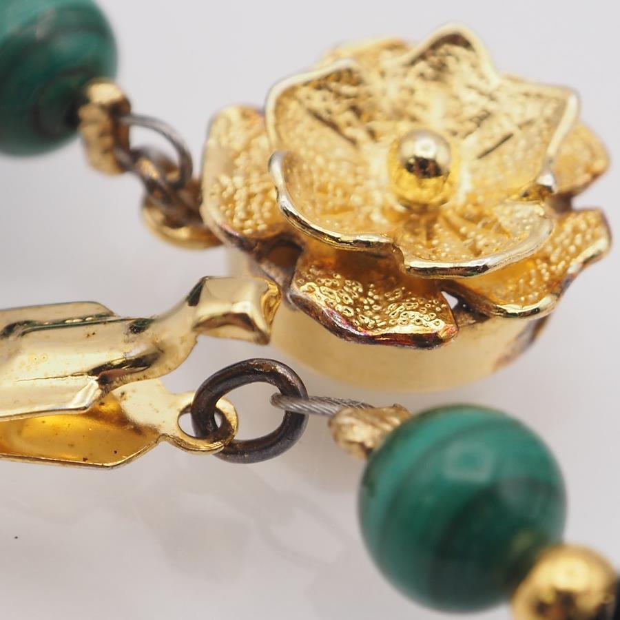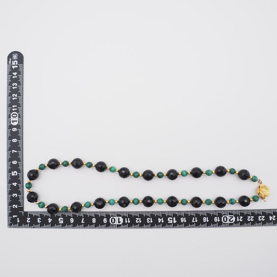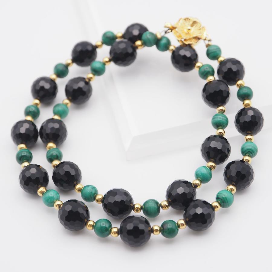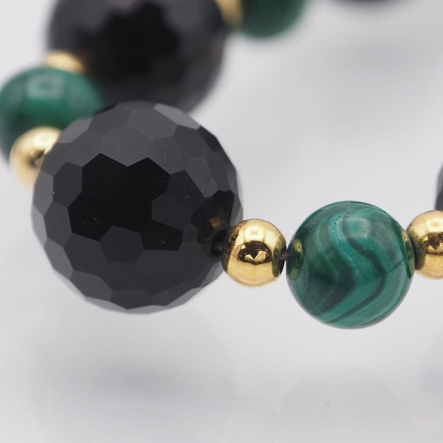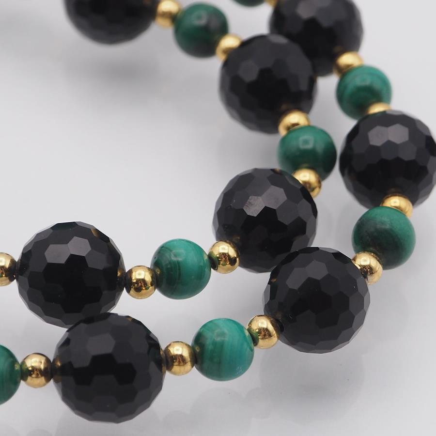 J728 Onyx, Malachite, and Peacock Stone Necklace with GSILVER Stamp, Mirror Ball Cut, Gold Design