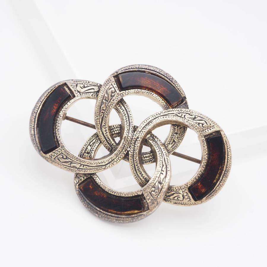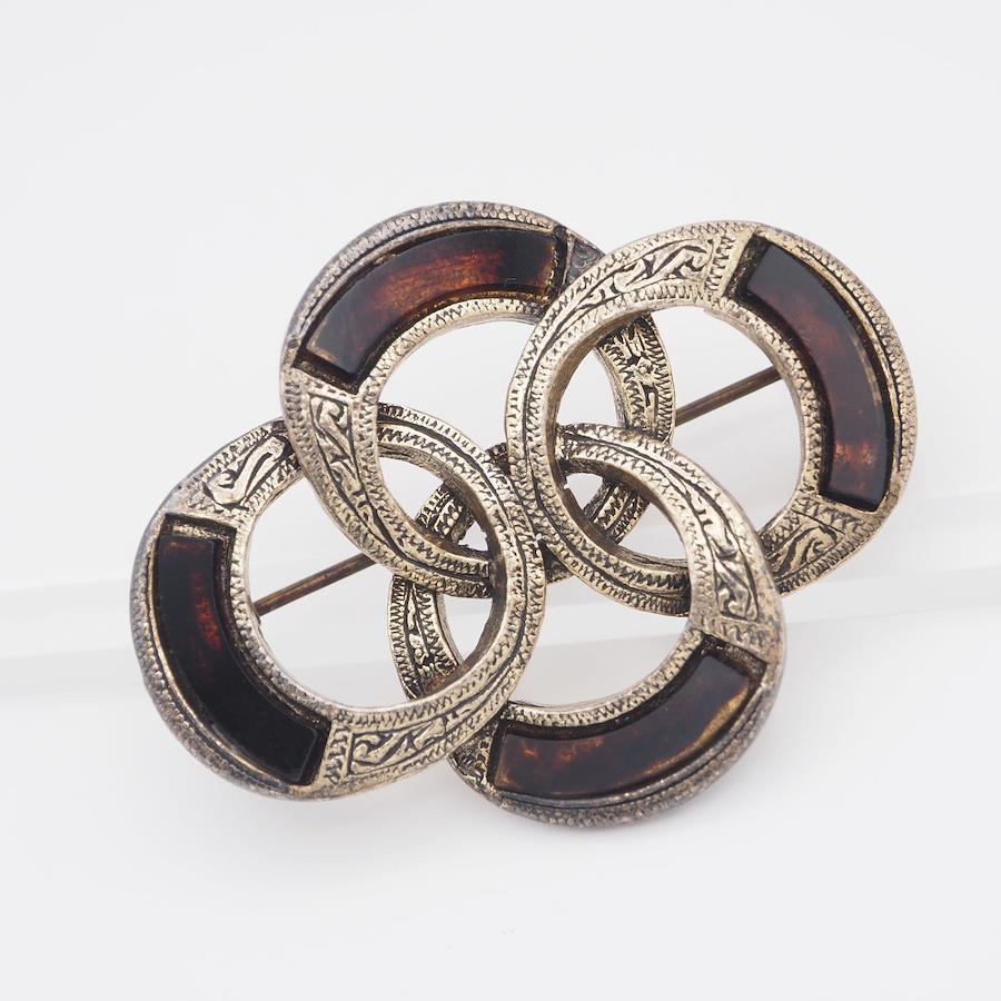 J757 British Vintage MIRACLE Brooch, Tortoiseshell-Style Gold Design, British Antique