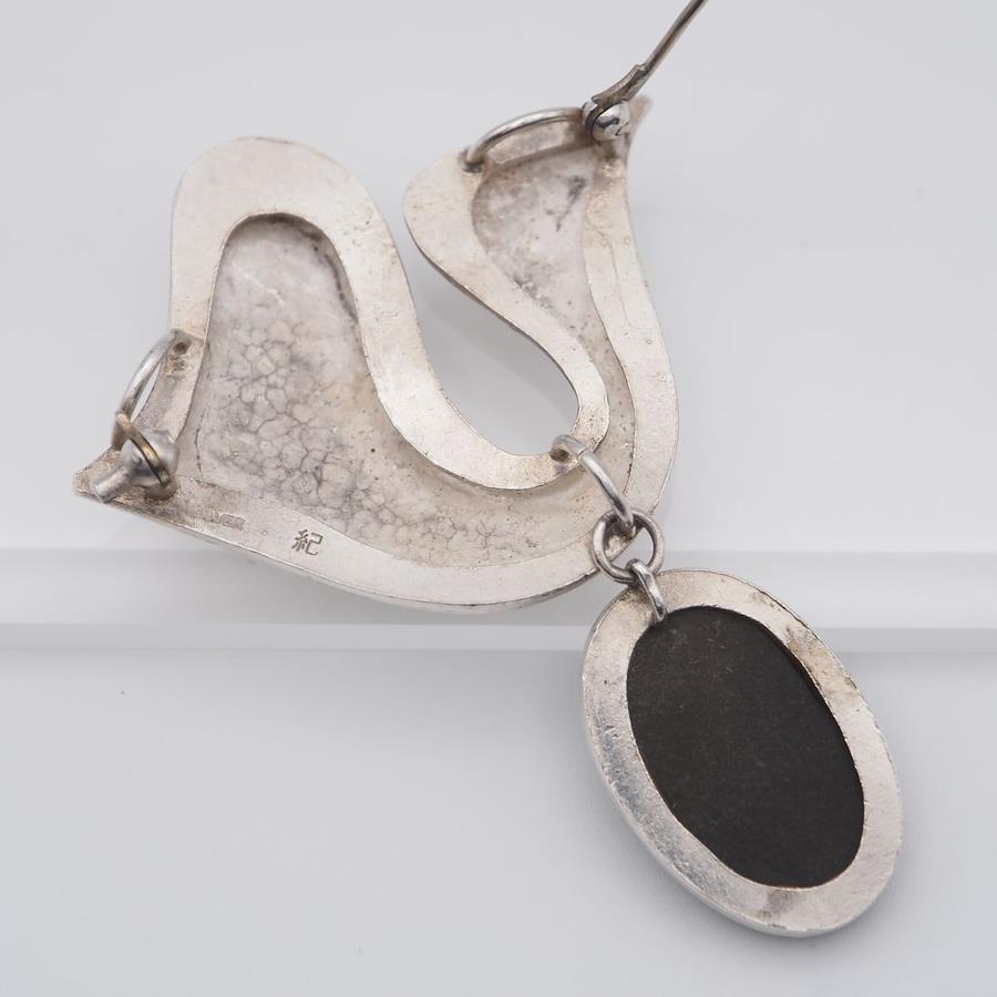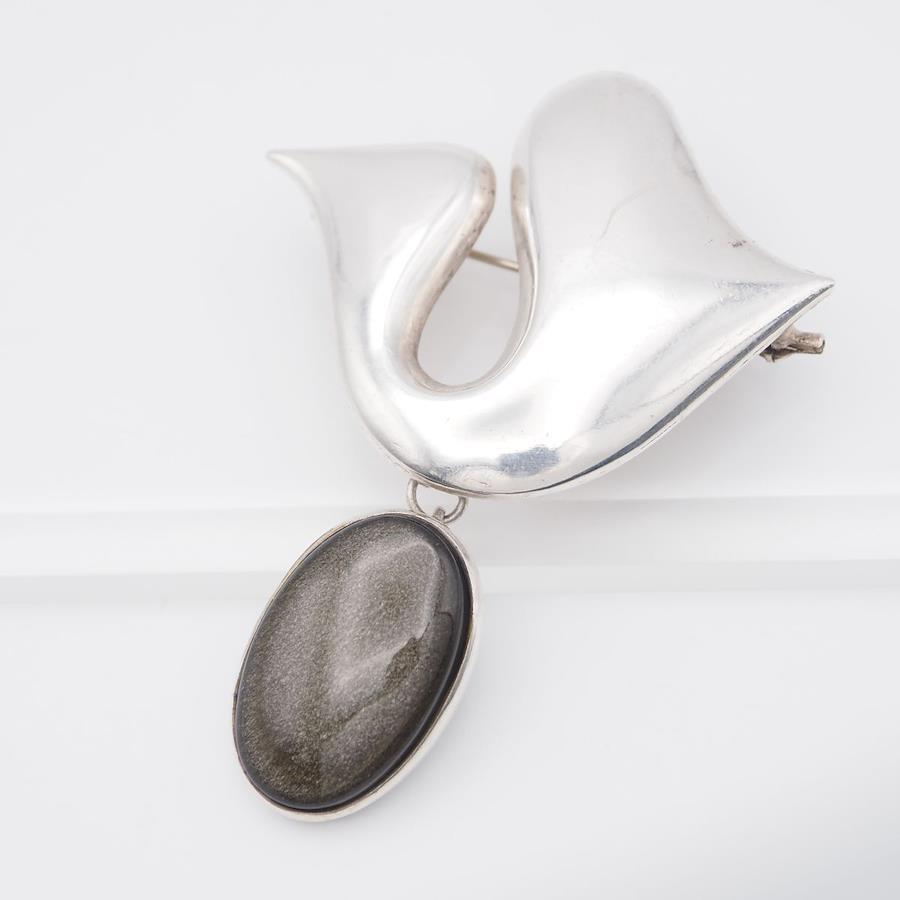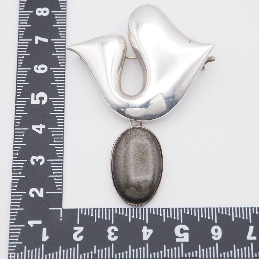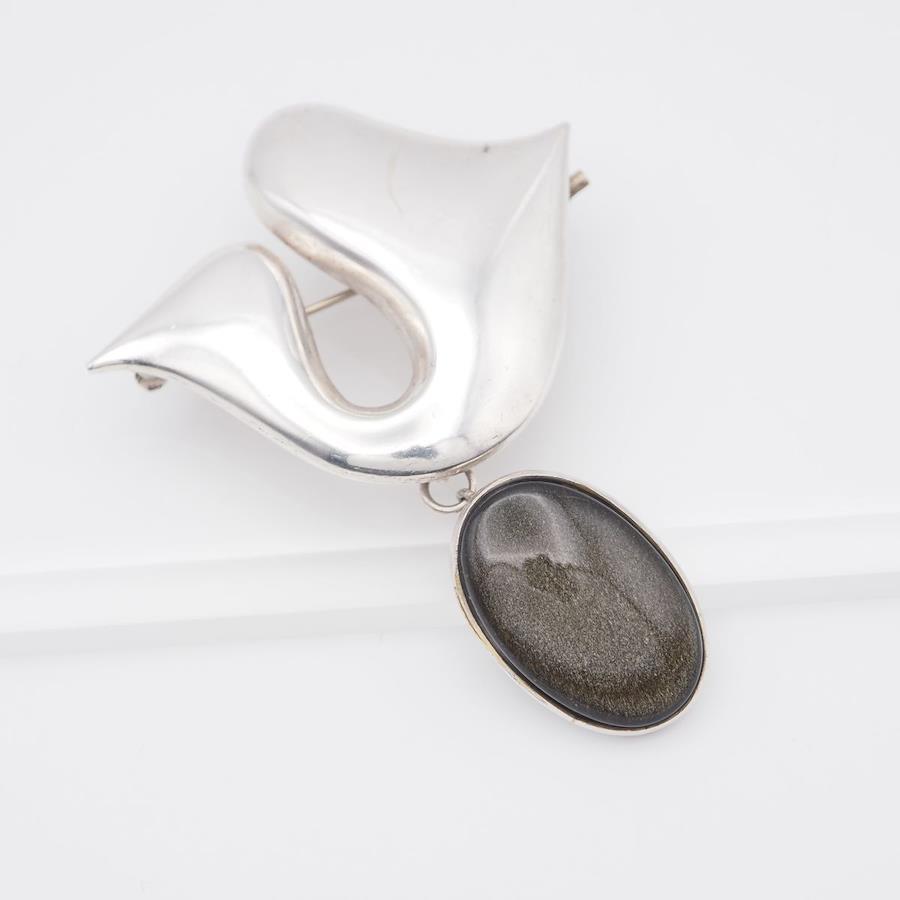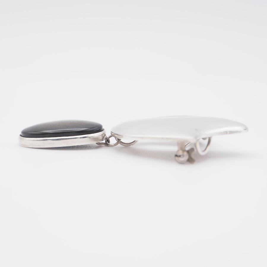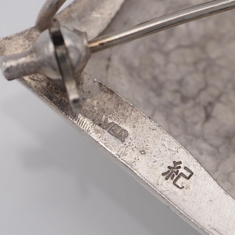 J811 Natural Stone Brooch, Artist's Work, Silver Stamp, Vintage Design