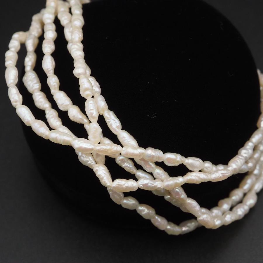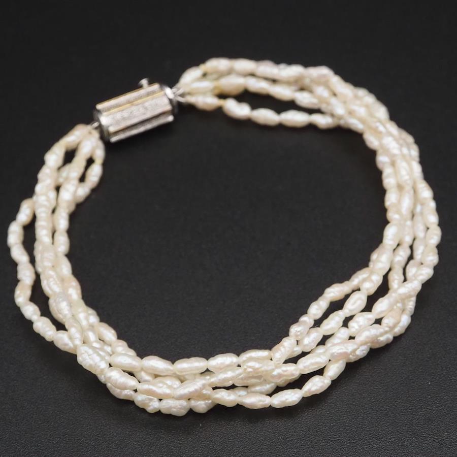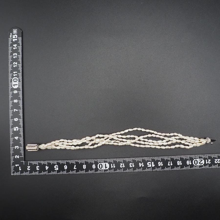J842 Freshwater Pearl Bracelet, Silver Stamp, 5-Strand Design, June Birthstone