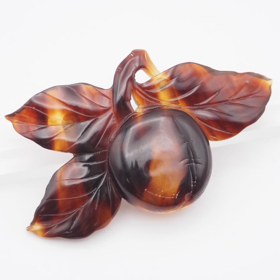 J986 Tortoiseshell Obi Clip with Fruit Design, Japanese Clothing Accessory
