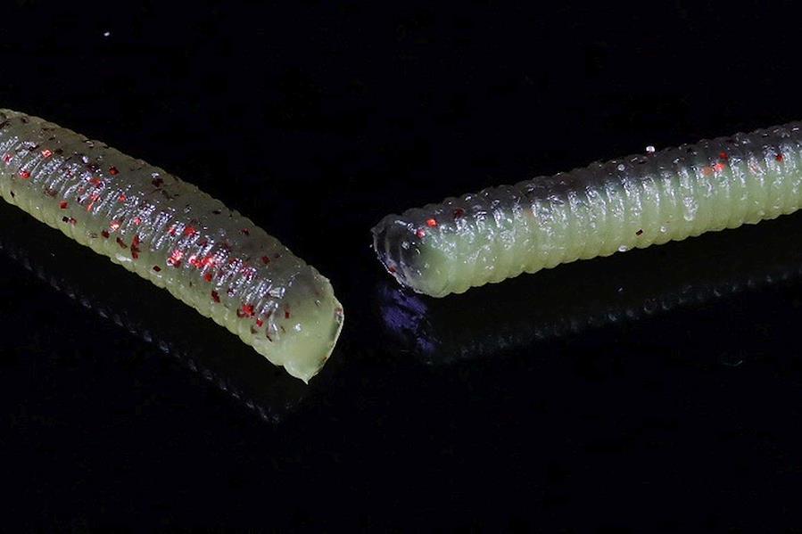 国内外問わず様々なフィールドで実績を残すフリックシェイク。ストレートワームにあえてカーブをつけるというコンセプトから生まれる複雑で艶めかしいロールの効いたアクションでバスを魅了します。シェイク時はもちろん、フォール中は両端から生まれる微波動はさらにアピール力を増し、神経質なビッグバスのバイトを誘発します。