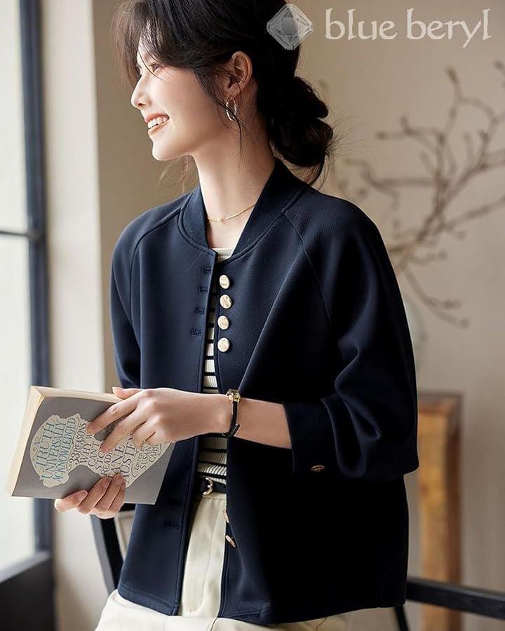 ゴールドボタンなどの上品なディテールがスタイルを品よく仕上げてくれます。