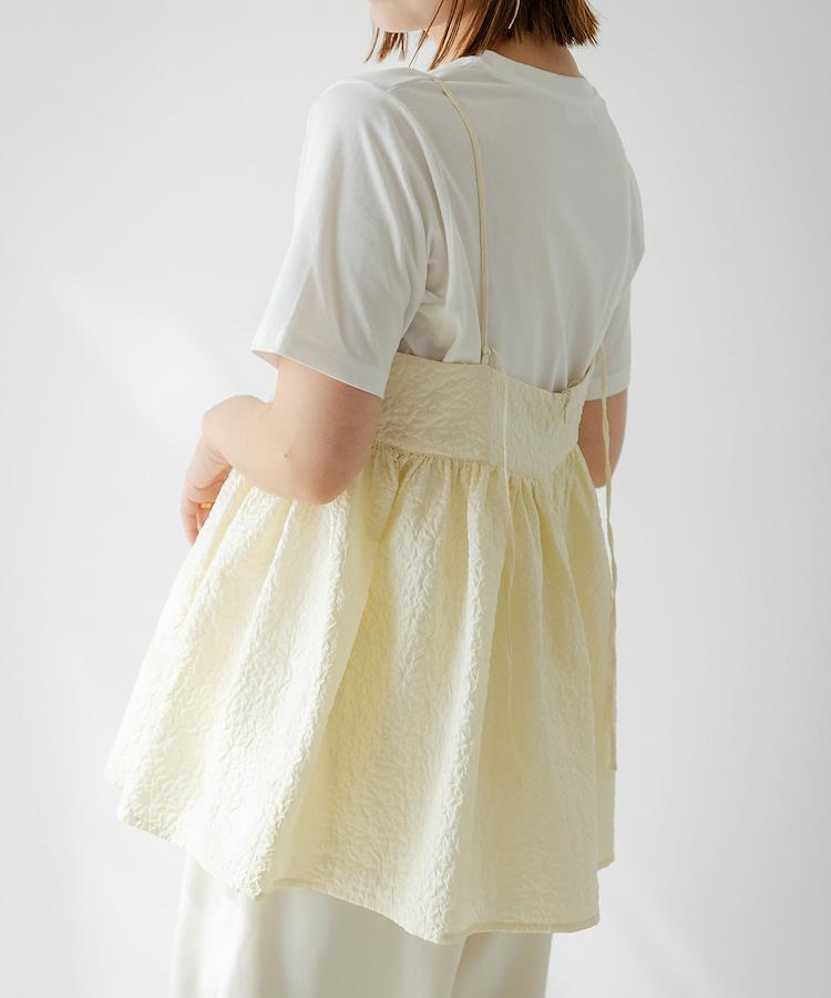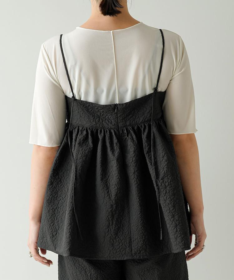 凹凸感のあるふくれジャガード素材が魅力的なペプラムキャミソール