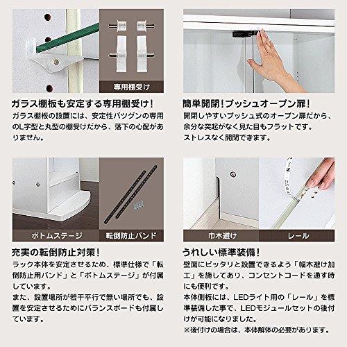 【外寸】幅83.1×奥行38.5×高さ180cm ※ボトムステージ取付時、幅83.3cm、奥行+10.7cm、高さ+2cmになります。 【製品重量】約68.5kg【内寸】幅79×奥行33.7 ※ガラス棚奥行×高さ81.8cm ※上下2ヶ所 【棚板耐荷重】5kg【材質】[本体]プリント紙化粧繊維板 [ガラス扉]5mm厚強化ガラス [ガラス棚板]5mm厚強化ガラス 【生産国】インドネシア ※お客様組み立て(組立時間:大人2人約90分)【梱包数】5梱包 【梱包サイズ】・5-1:46.7×187.7×5.5cm(約17kg) ・5-2:62.6×99.7×10.3cm(約17kg) ・5-3:84.7×87.5×5.7cm(約23kg) ・5-4:84.7×87.5×5.7cm(約23kg)・5-5:20.6×20.6×6.2cm(約1kg)※小型の宅急便とは違い、地域・シーズンによっては、お届け指定日時に間に合わない場合がございますので、ご了承ください。