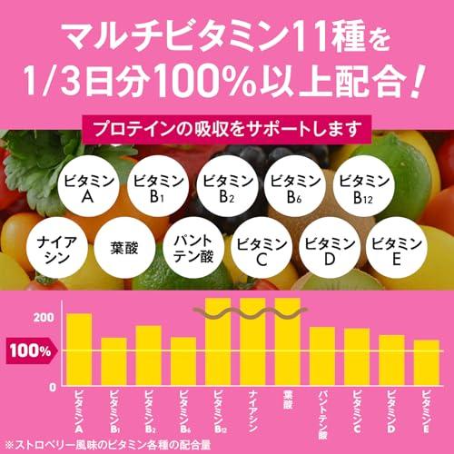 【おいしいの王様】衝撃の絶品プロテイン!ホエイプロテイン100%使用で、1杯あたり21g以上たんぱく質配合。さらに1/3日分のビタミン11種も配合。 【おいしい・溶けやすい・続けやすい価格】こだわり①美味しさ:飲みやすさ・美味しさにこだわり、水で美味しく飲める味わいを実現しました。こだわり②溶けやすさ:独自の処方で溶けやすさを追求。泡立ちやダマ感、こなっぽさを低減しました。こだわり③続けやすい価格:毎日飲むものだからこそ、栄養価と続けやすい価格にこだわりました。 【ストロベリー風味】まろやかな甘さのクリーミーなストロベリー風味。酸味を控えめに仕上げることで優しい甘さが際立つ飲みやすさ抜群の味です。 【お召し上がり方】約30g(付属のスプーン小山盛り2杯)を目安に200mlの水などに溶かしてお召し上がりください。※シェイカーを使用すると溶けやすく手軽に摂取できます。 【おすすめの摂取タイミング】1日2?3回を目安に、運動前後や間食時、睡眠前に摂取いただくことをおすすめします。