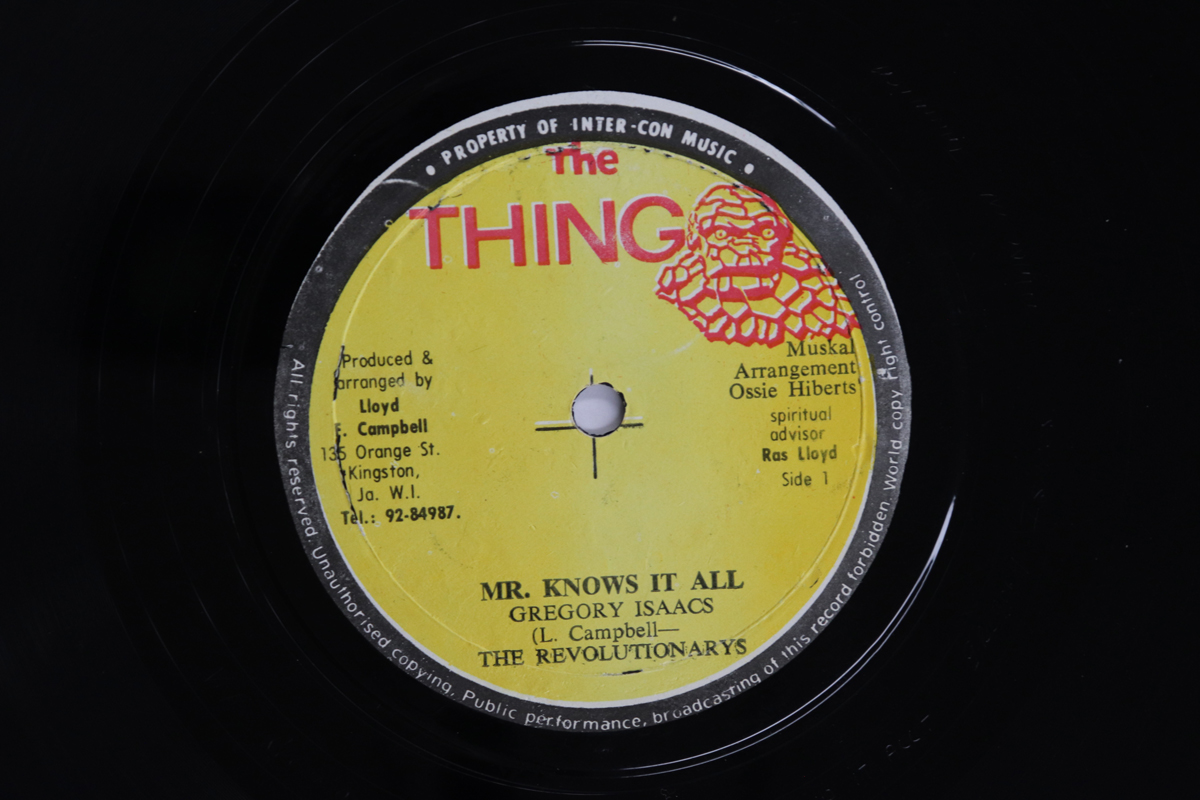 ・アーティストGregory Isaacs & The Revolutionarys・タイトルMr. Knows It All / War Of The Stars・レーベル・型番THE THING NONE・フォーマット12インチレコード・コンディション(盤)良い (VG+)・コンディション(ジャケット)プレインカバー(元ジャケット/カバー無し)・コンディション(帯)オビなし・特記事項【盤に短いヘアライン】【EW】