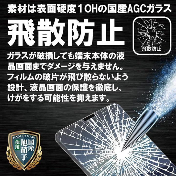 「高強度」5層のレイヤー加工で硬度10H、国産AGCガラスで、鋭利な傷から保護、飛散防止加工でガラスの飛び散りを防ぎ液晶破損とケガから保護。