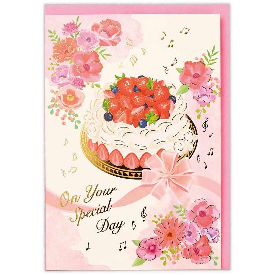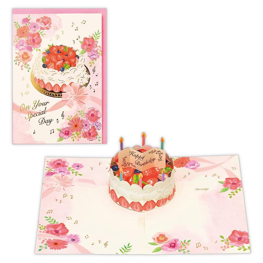 3営業日以内に発送≪新品未開封品≫カードを開くとベリーがたっぷりの華やかなケーキがポップアップする、二つ折りのオルゴールカード。どなたにも贈りやすい優雅で上品なデザインです。