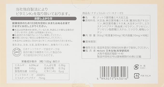 日本生物科学研究所 ナチュラルスーパーキナーゼII+エラスチン 340mg×90粒
