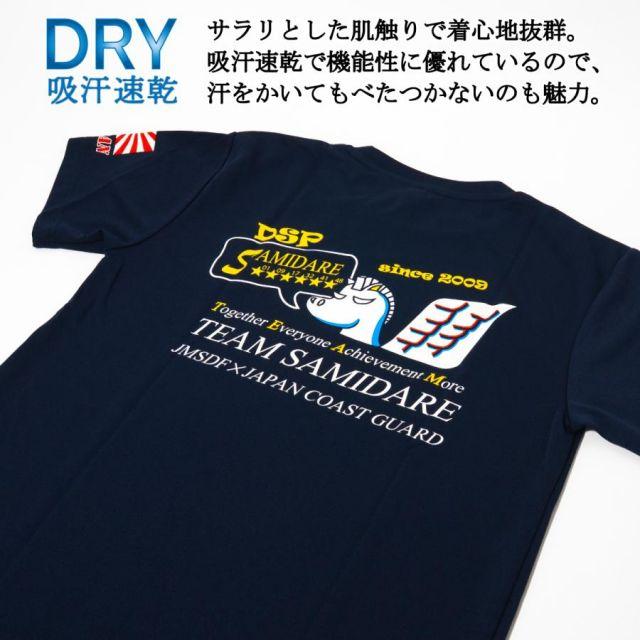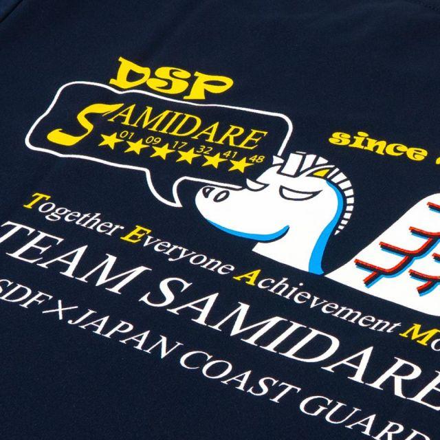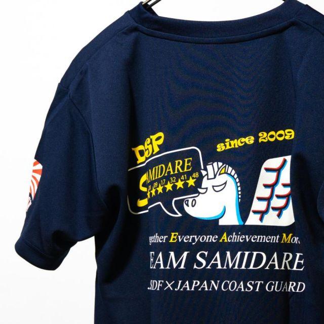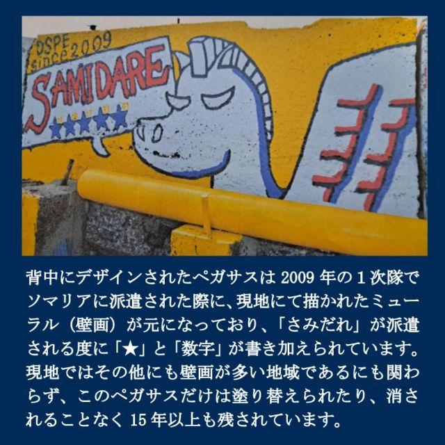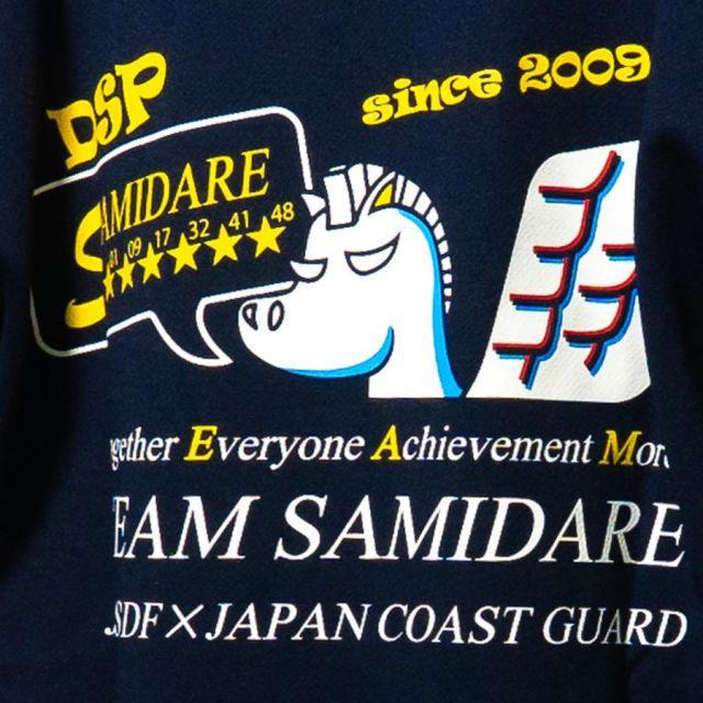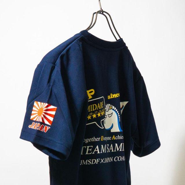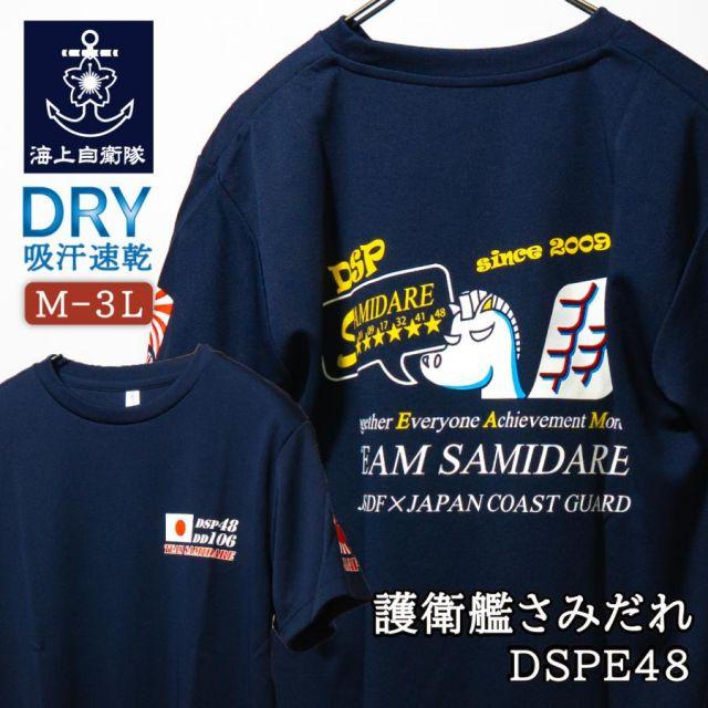 商品名:海上自衛隊 グッズ 記念Tシャツ 護衛艦さみだれ 【 第48次派遣海賊対処行動水上部隊 ( DSPE48 )】自衛隊 海自 吸水速乾 カジュアル ドライ 速乾令和6年6月~12月の約半年間に亘る、「第48次派遣海賊対処行動水上部隊(DSPE48)」を記念して作成されたTシャツです。背中にデザインされたペガサスは2009年の1次隊でソマリアに派遣された際に、現地にて描かれたミューラル(壁画)が元になっており、「さみだれ」が派遣される度に「★」と「数字」が書き加えられています。現地ではその他にも壁画が多い地域であるにも関わらず、このペガサスだけは塗り替えられたり、消されることなく15年以上も残されています。ドライTシャツなので、サラリとした肌触りで着心地抜群。吸汗速乾で機能性に優れているので、汗をかいてもべたつかないのも魅力です。<カラー>ネイビー<素材>ポリエステル100%(ドライTシャツ)<サイズ(cm)>M:胸囲100・着丈68・肩幅46L:胸囲106・着丈71・肩幅48LL:胸囲112・着丈74・肩幅503L:胸囲120・着丈77・肩幅53