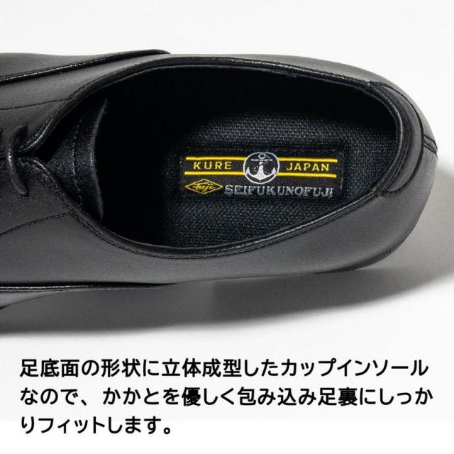商品名:自衛隊 靴 海上自衛隊幹部用黒短靴( 人工皮革 ) 黒 ストレートチップ 海上保安庁 短靴 軽量 タイプ 滑りにくい 軽い クッション 疲れにくい 幅広 ワイド 4E【履き心地と機能性にとことんこだわったオリジナル】長年、海上自衛隊の制服やグッズを手掛けている「制服のフジ」のオリジナル。「軽くて疲れにくい黒短靴が欲しい」という海上自衛隊員さんからの要望で誕生した、履き心地と機能性にこだわった1足です。伸縮性があり、ゆったり幅広設計なので、長時間履いていても疲れにくいと多くの隊員さんにご愛用いただいております。■幅広 4Eタイプ甲被:人口皮革靴底:合成ゴムウィズ:4E重量(g/両足):680g(25cm)商品番号:U014824CM
