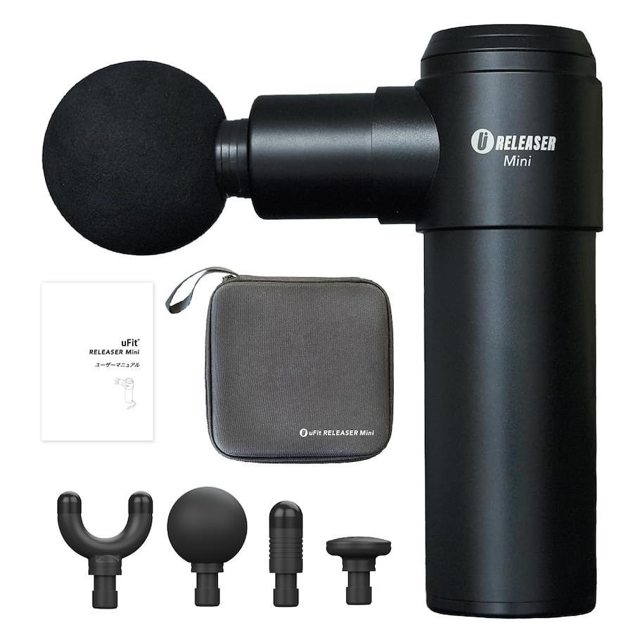 日本国内のフィットネスブランドのuFitが展開する電動リリースガン『uFit RELEASER Mini』。コンパクトながらパワフルな振動が全身をくまなくケアします。 【パワフルな振動が極上の癒しに】4段階の振動モードで調節が可能。パワフルな振動が身体に刺激を与えます。 【4種のアタッチメントが全身にフィット】アタッチメントを付け替えれば首・背中・肩・胸・腰・お尻・足など、全身のあらゆる部位にフィット。ピンポイントでツボを刺激します。 【コードレスで最長6時間稼働可能】1回の充電で最長6時間利用できる長時間使用可能なバッテリーを採用。充電ポートにはType-cを採用し、約3時間でフル急速充電できます。持ち歩いて使うポータブル筋膜リリースガンだからこそ充電にもこだわりました。バッテリー切れの心配なし! 【静かな音量】駆動音の小さなモーターを使用することで、使用時の音が非常に小さくなっています。集合住宅の方でも問題なく利用頂けます。