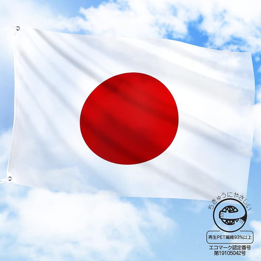 Japanese Flag, Hinomaru, Recycled PET Fiber, 70 x 105 cm, Eco Mark Certified, Green Purchasing Law Compliant, SDGs, Made in Japan