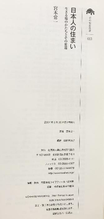 Japanese Housing: The Form of Living Space and Its Transition (Hyaku no Chiesosho 13) by Tsuneichi Miyamoto, Rural Culture Association