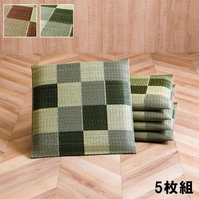 Japanese-made rush grass cushions (zabuton), block pattern, set of 5, approximately 55 x 55 cm.