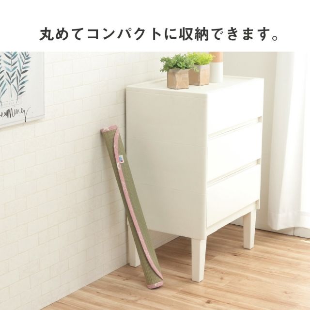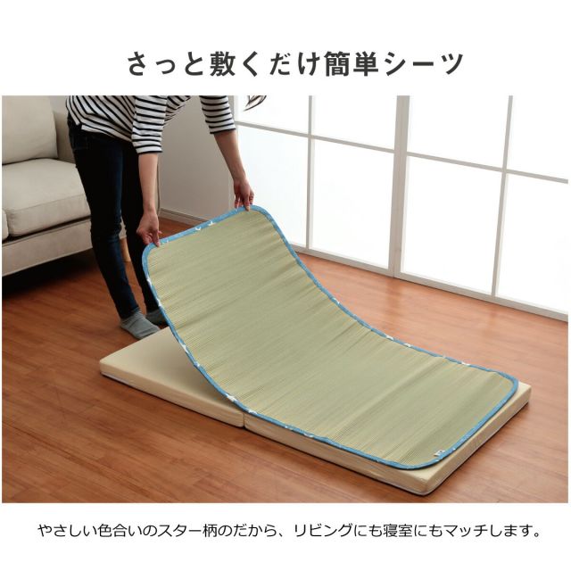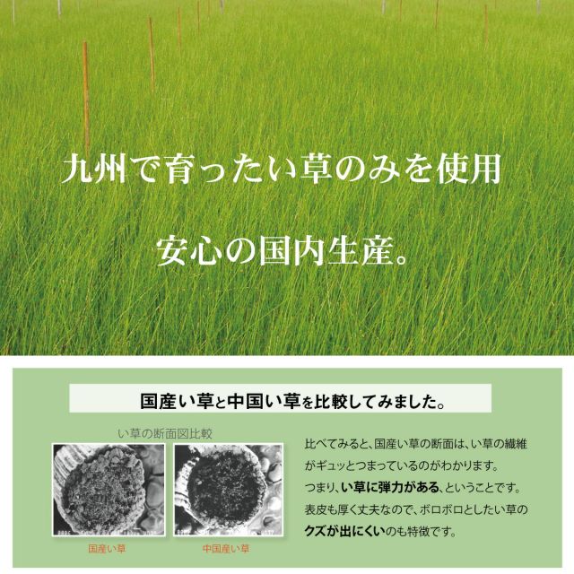 "安心の「日本製」で作ったベビー用い草シーツです。い草最大産地である九州産のい草を使用しております。洋室にも合うオシャレなデザイン。い草には汗などのジメジメ感を軽減する吸湿性と抗菌防臭などの効果があります。い草には汚れにくい性質があるので、定期的に乾いた雑巾や掃除機でゴミを取り除き、日陰干しをするだけで、お手入れ完了です。"