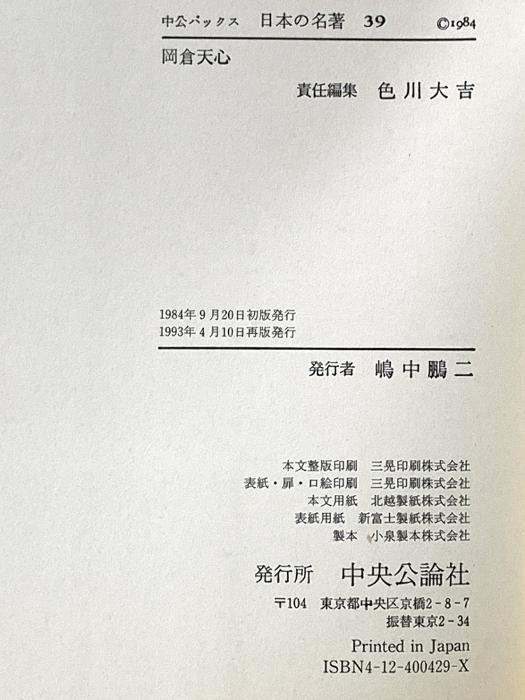 Japanese Masterpieces (39) Okakura Tenshin (Chuko Backs) Chuokoron-Shinsha Okakura Tenshin