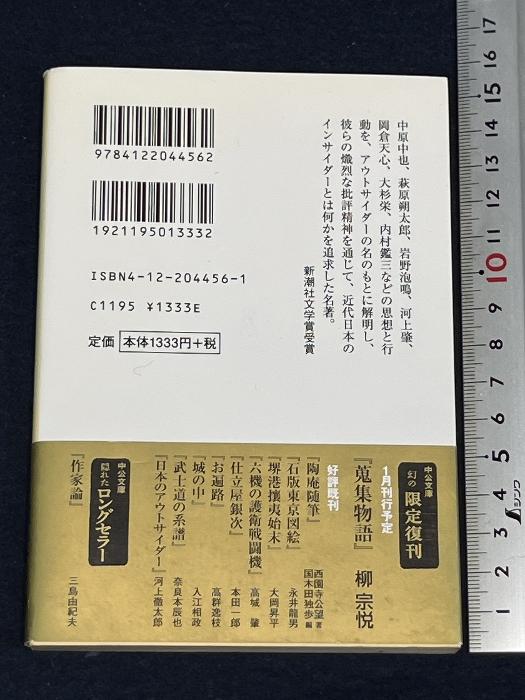 e01-260322002006015-000日本のアウトサイダー (中公文庫 R 9) 中央公論新社 河上 徹太郎中原中也、萩原朔太郎、岩野泡鳴、河上肇、 岡倉天心、内村鑑三、大杉栄などの思想と行 動を、アウトサイダーの名のもとに解明し、 彼らの熾烈な批評精神を通じて、近代日本の インサイダーとは何かを追求した名著。 新潮社文学賞受賞9784122044562<%% SHIPPING %%>表紙に、通常使用による擦れ、三方小口にヤケ、があります。本は経年感、使用感ございますが読むことに支障はございません。※注意事項※■商品・状態はコンディションガイドラインに基づき、判断・出品されております。■付録等の付属品がある商品の場合、記載されていない物は『付属なし』とご理解下さい。
