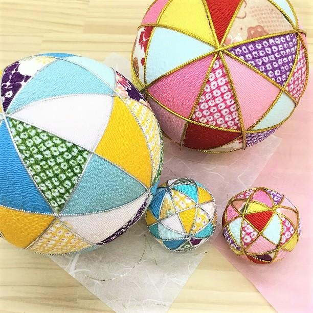 和柄のちりめん生地や正絹がおしゃれな手毬♪大と小が各1個入りになります。