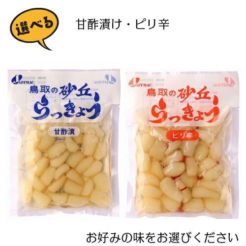鳥取県福部町の砂丘地で栽培した「らっきょう」を純米醸造酢と酵母液で味付けした柔らかく歯ざわりのよいらっきょう漬けと、国産の唐辛子を使用したピリ辛タイプの選べる2種のセット商品です!