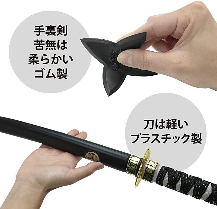 ・「プレゼント・小道具に」刀はプラスチック製で軽く、手裏剣・苦無は剣先が柔らかいのでお子様へのプレゼントとしても危なくないので最適です。