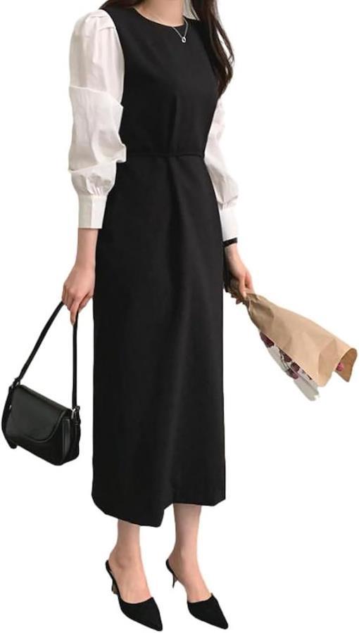 フォーマルな小物やパンプス、ジャケットなどを合わせれば、シャープな縦ラインがオフィスで浮かない 凛としたエレガントスタイルに。