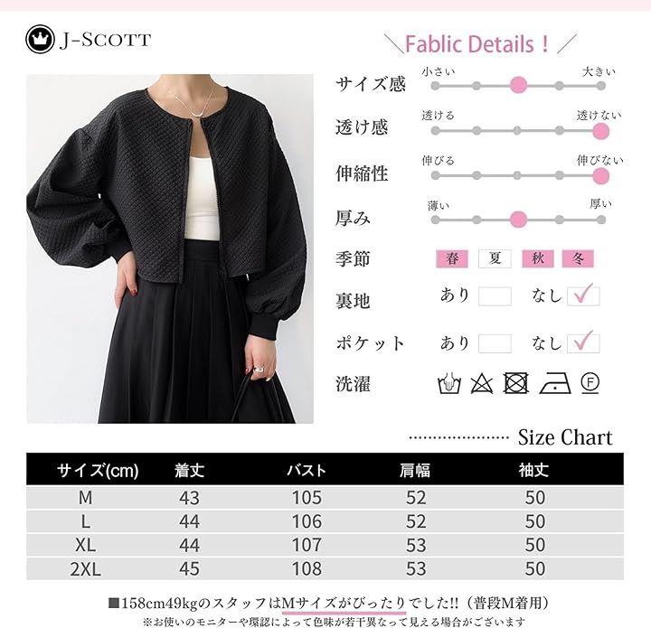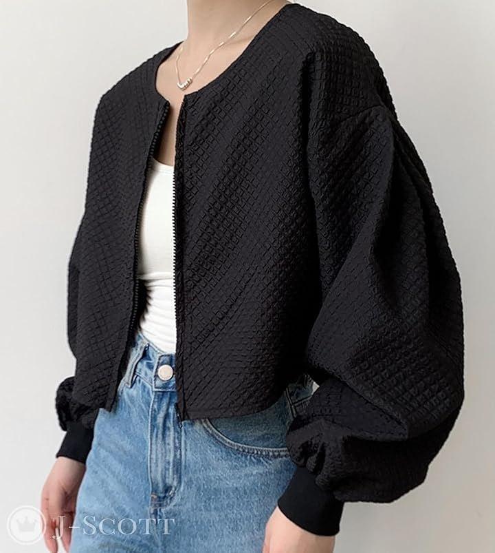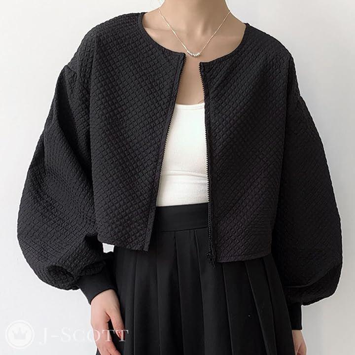 「端正に洒落感高まるショートジャケット」 凛とシックなムードをまといながら、たっぷりとボリュームのあるスリーブが 女性らしい華やかな着こなしに導いてくれるショートジャケット。