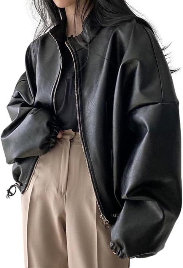 「おしゃれを底上げ。大人が着こなすブルゾン」 レザーライクな なめらかな光沢がシックなムードを演出するブルゾン。