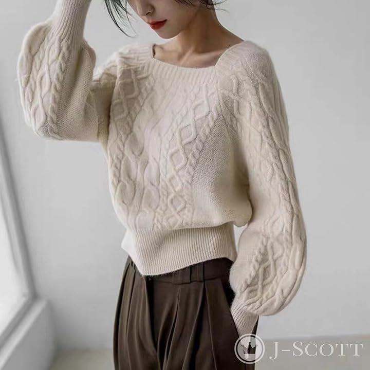 クラシカルな編み目に、フワリとしたほんのり甘さが漂うニットトップスで大人のフェミニンスタイルを完成させて。