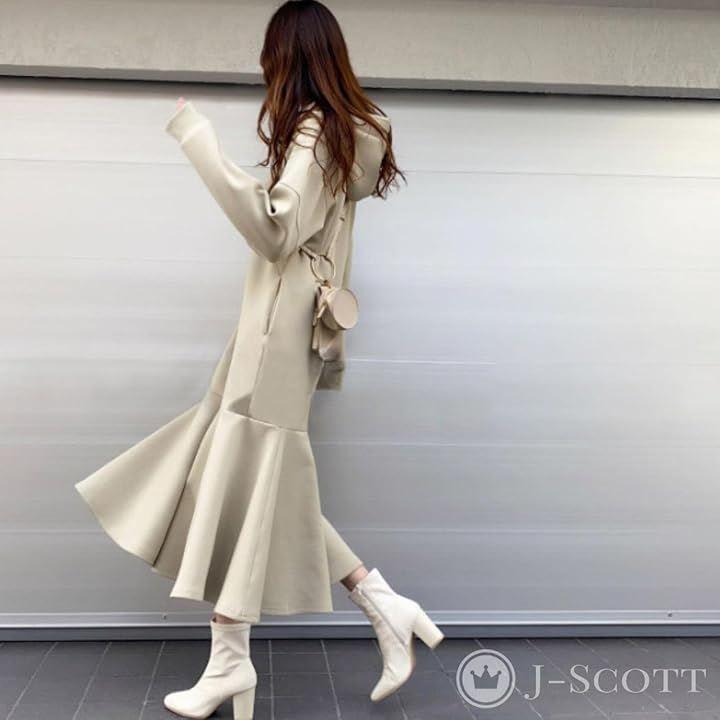 ミモレ丈のマーメイドラインが縦のラインを強調し、スタイルアップ効果も高めてくれます。