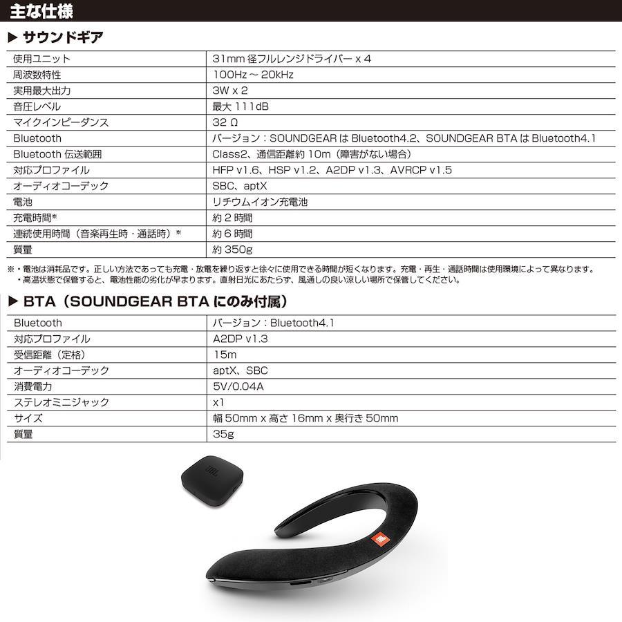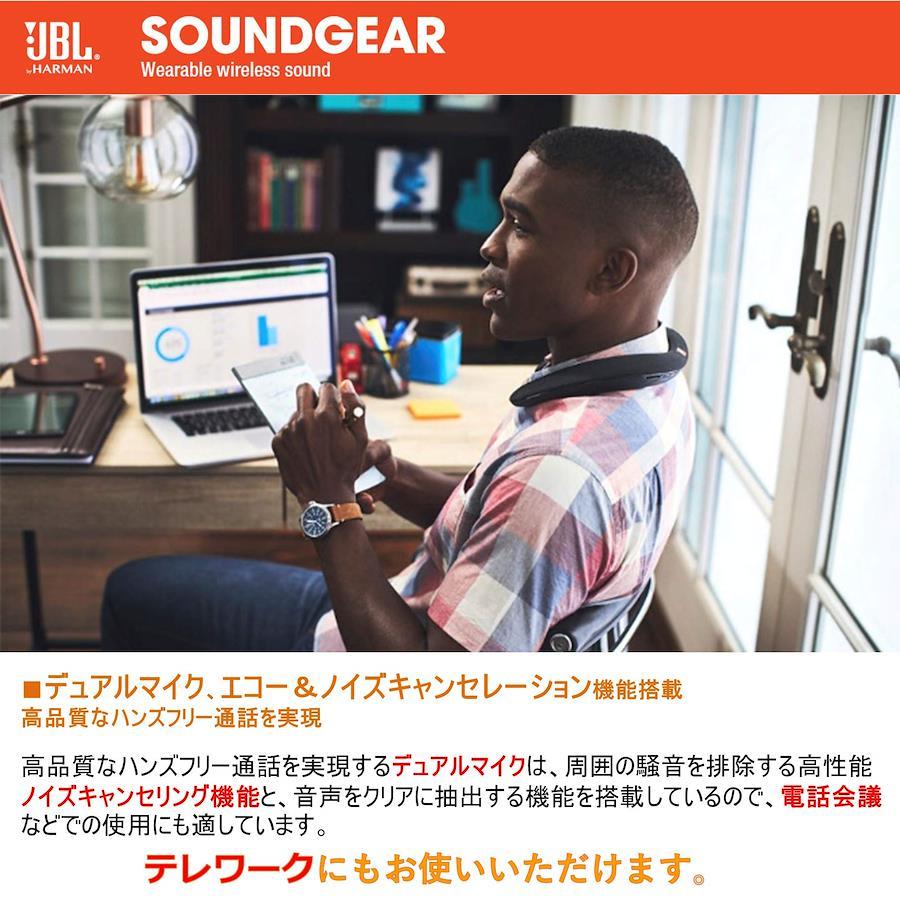 「SOUNDGEAR」は、首にかけて音楽を楽しむことのできるウェアラブルワイヤレススピーカーです。「SOUNDGEAR」をスマートホンやタブレットなどとBluetooth接続するだけで、周囲の音環境を遮断することなく自分だけのサウンドゾーンを作ることができます。首元に搭載した31mm径スピーカー4基とバスブーストのユニットから、JBLならではの臨場感あふれるサウンドが楽しめます。