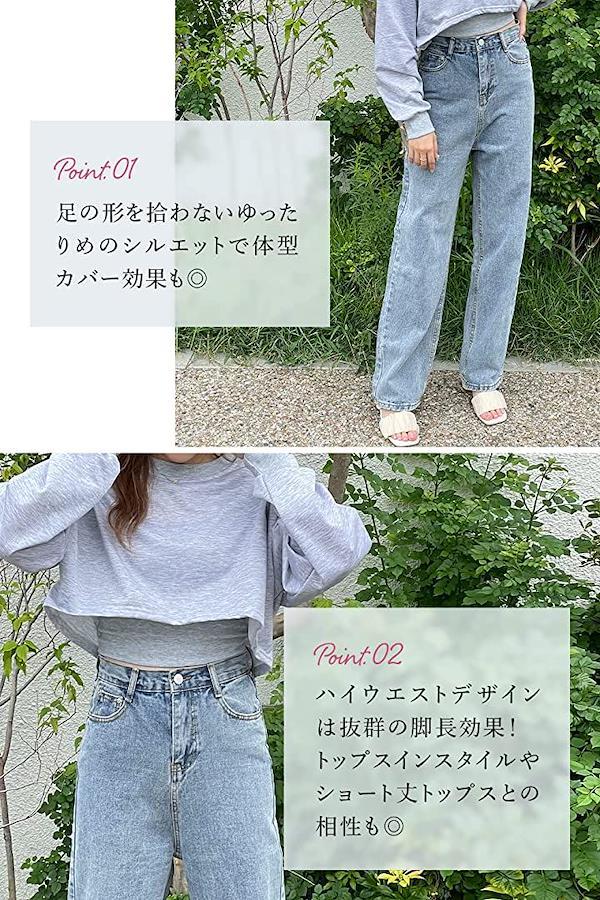 ハイウエストで腰の位置が高くなるため脚長&スタイルアップ効果もgood。。