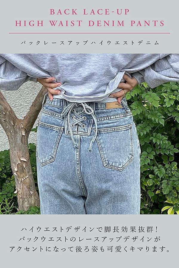 うしろ姿の完成度。。うしろ姿が可愛いバックレースアップがポイントのデニムワイドパンツ。