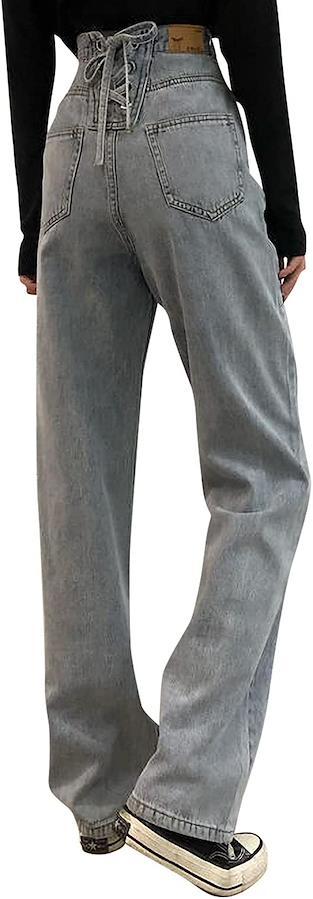Jeans for women, high waist, denim, wide pants, straight, back lace, S