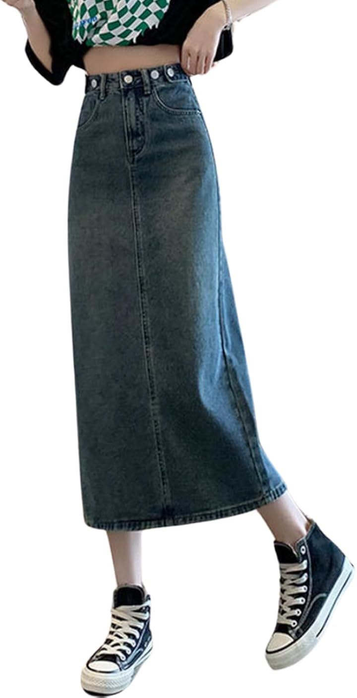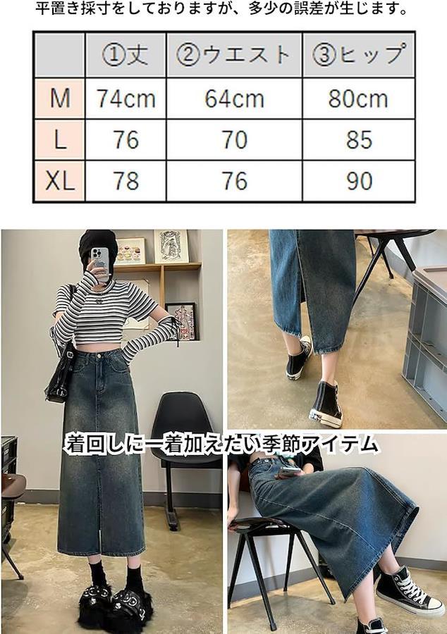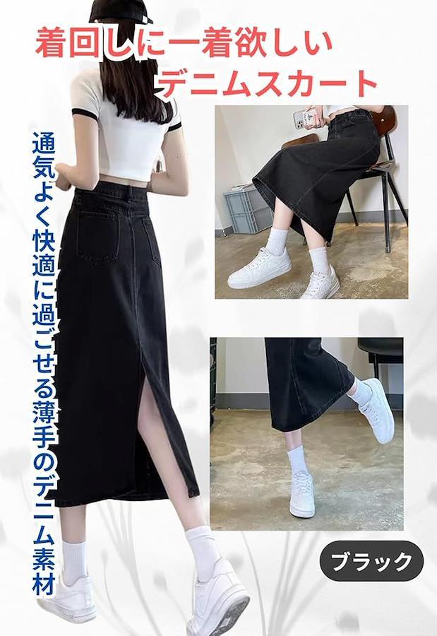 すっきりとした腰高のAラインのシルエットはヒップ周りから裾に向けてストンとしているシンプルなデニムスカートです。