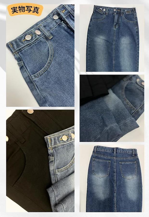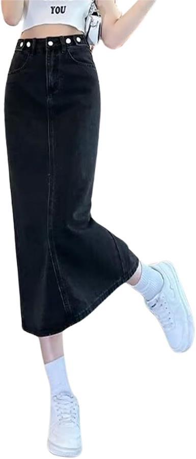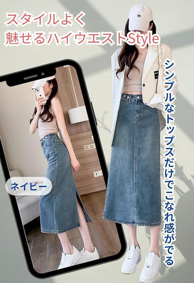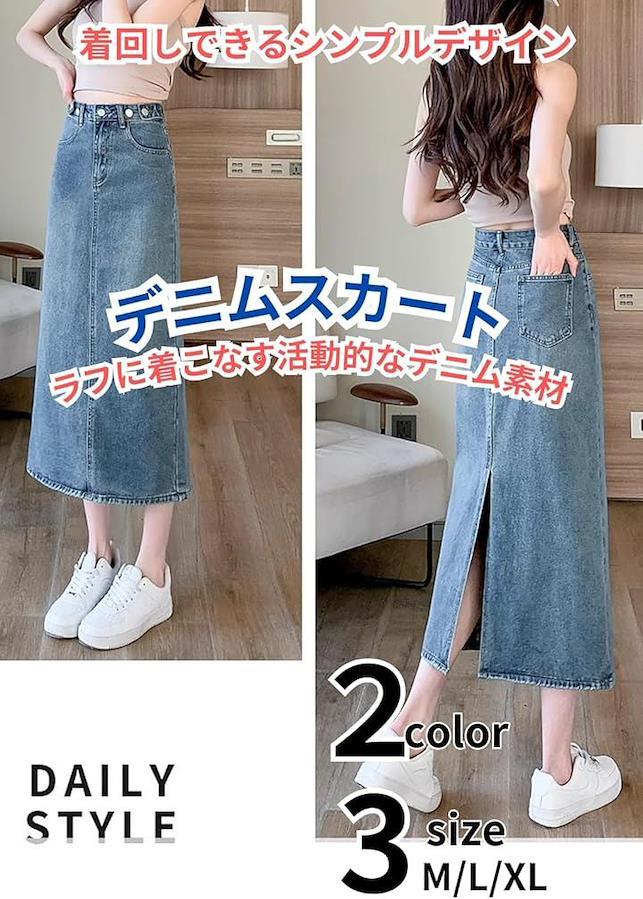 すっきりとした腰高のAラインのシルエットはヒップ周りから裾に向けてストンとしているシンプルなデニムスカートです。