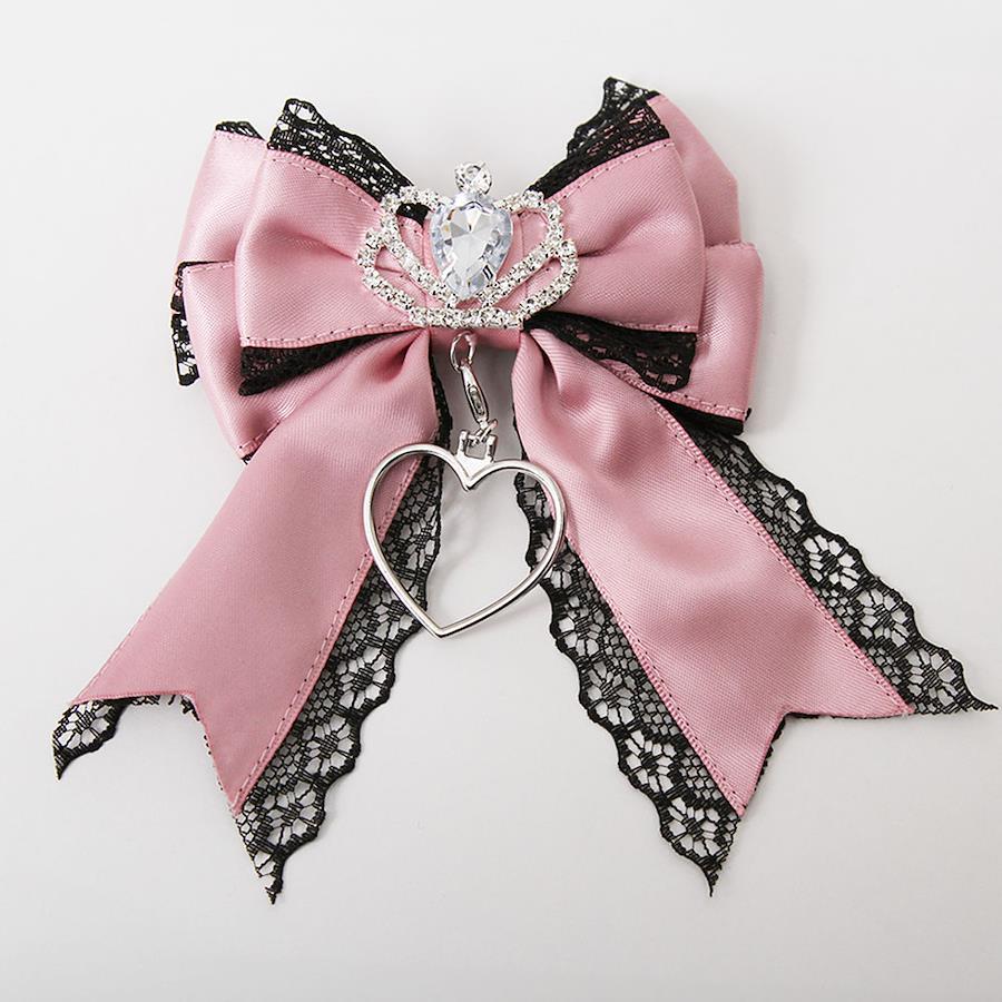 中心には大きめ王冠ビジューとサテンリボンにレースがポイントのヘアクリップ。