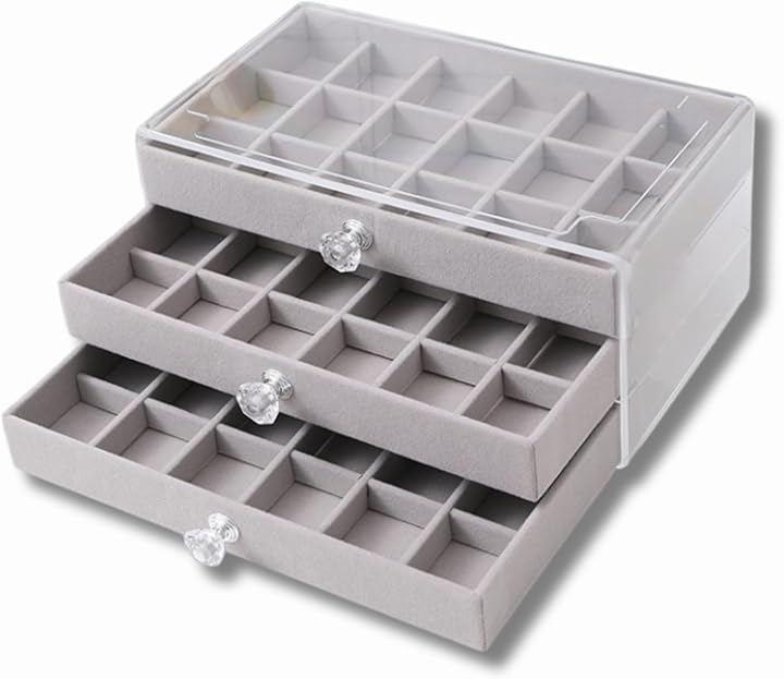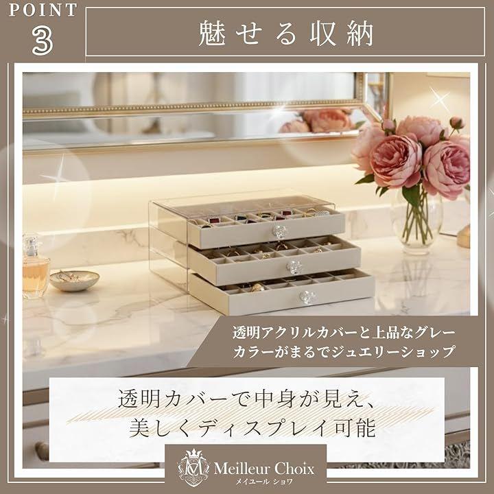 透明アクリルカバー付きで中身が一目で分かり、ほこりや汚れから大切なジュエリーを保護。