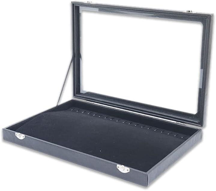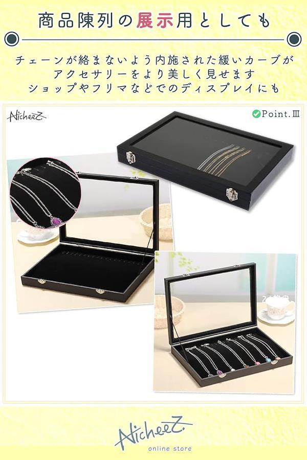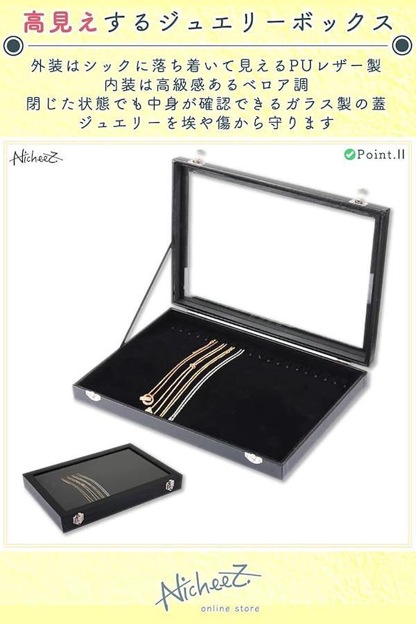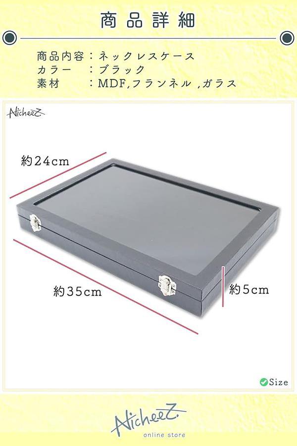 「商品内容」ネックレスケース セット数:1ケース カラー:ブラック 素材:MDF,フランネル,ガラス サイズ:幅/約35cm 奥行き/約24cm 高さ/約5cm