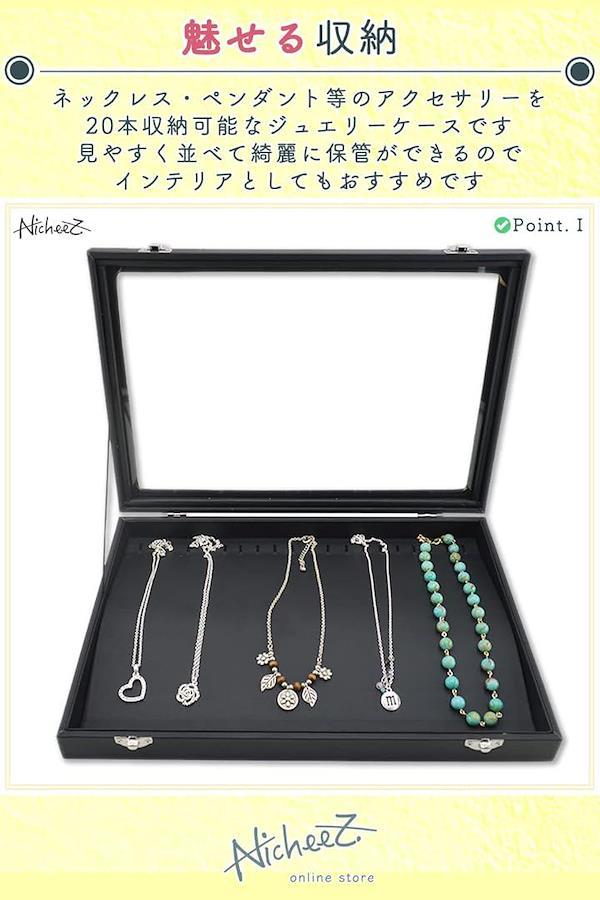 「魅せる収納」ネックレス・ペンダント・チョーカー等のアクセサリーを20本収納可能なジュエリーケースです。