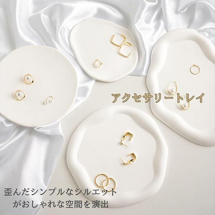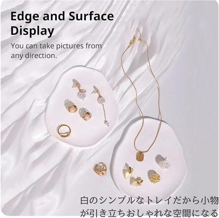 おしゃれなホワイトカラーのジュエリートレイで、歪で柔らかなシルエットが特徴です。