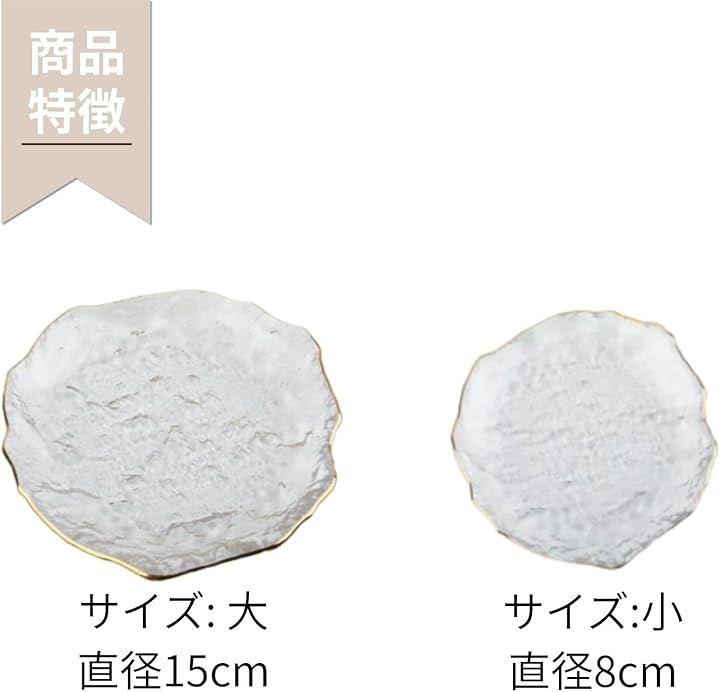 「商品内容」種類: 無地ガラス、金縁ガラスの2種類 サイズ: 大(直径15cm)、小(直径8cm)の2サイズ 素材:ガラス