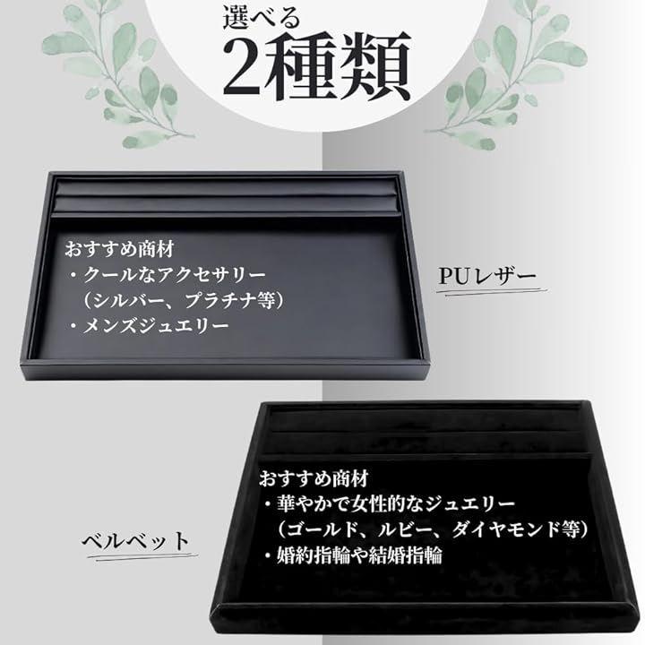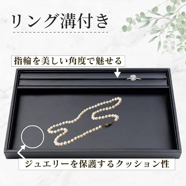 「接客業務をサポートする洗練デザイン」シンプルでスタイリッシュなジュエリートレイは、接客や商品展示の場面で高いプロフェッショナル感を演出します。