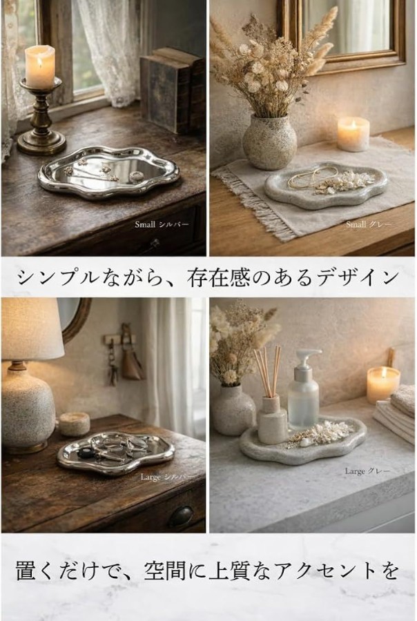 スタイリッシュで高級感のあるシルバーカラーが、ドレッサーやデスク周りを上品に演出し、空間全体をワンランク上の印象に仕上げます。
