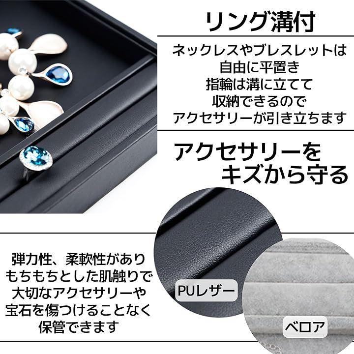 「アクセサリーをキズから守る」材質は高品質PUレザーを採用、弾力性、柔軟性があり、もちもちとした肌触りで、大切なアクセサリーや宝石を傷つけることなく保管できます。
