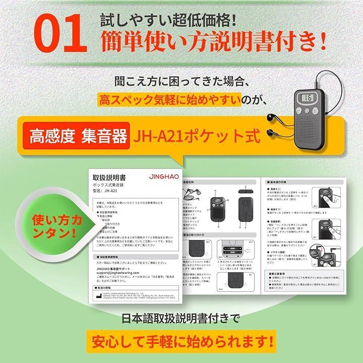 JH-A21 Ultra-Sensitive Hearing Amplifier, Pocket-Sized, Easy to Use, for Seniors, 16-Level Volume Control, Binaural, Large Buttons, Portable, Easy-to-Use Design