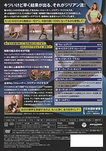 キツイけど早く結果が出る、それがジリアン流! 数々のヒットDVDを送り出してきたNo.1トレーナー、ジリアン・マイケルズが、多くの皆様のリクエストを受けて考察! 短時間で絶大な効果が出るよう工夫を凝らした、超ハードな5つの10分間ワークアウトで、効率的に全身をシェイプアップします。 ■無数の組み合わせが可能 ウォームアップとクールダウンもなるべく併せて行ってください。また、複数のワークアウトを組み合わせることで、更なる効果が期待できます。 姉妹編の「完全燃焼編」のワークアウトを組み合わせることも可能です。 ■初心者と上級者のバリエーションをご用意 初めての方や運動が苦手な方でもOK。徐々にレベルアップして、楽しみながら継続してください。 ■全米No.1トレーナー、ジリアン・マイケルズ アメリカの大人気TV番組"The Biggest Loser"で出演者たちを驚異的なダイエットに導き、大注目を集めたジリアン・マイケルズ。 彼女のスパルタ・エクササイズは 「厳しいけれど、ヤル気を引き出してくれる、あきらめずに続けられる、そして確実に結果が出る」 と人気を呼び、最強のトレーナーとしての座を揺るぎないものにしています。 1. ウォームアップ (02:44) 2. キャリステニクス・トレーニング (12:01) ⇒自分の体重を不可にする自重系筋トレ(キャリステニクス)で、効率的に全身をくまなくコンディショニング 3. キックボックス・ブラスト (11:25) ⇒脂肪もストレスもノックアウト! ボクシングと総合格闘技にインスパイアされた動きで、脂肪を燃やし尽くす! 4. ブーティ・ブート・キャンプ (12:09) ⇒ダンベルを使用し、理想の形のお尻を作り上げる強力ワークアウト! 持ち上げて、引き締めて、形を整えます 5. ピラティス・パワー (12:06) ⇒マットの上でのピラティス・ワークアウ+AS7トでコアに働きかけ、強くて締まった脂肪をクリエイトします 6. カーディオ・バーン (11:26) ⇒強力な有酸素運動で心拍数を上げ、カロリーを消費。持久力を付けて心血管を強化! 7. クールダウン (03:45)