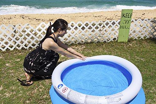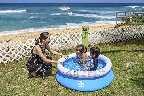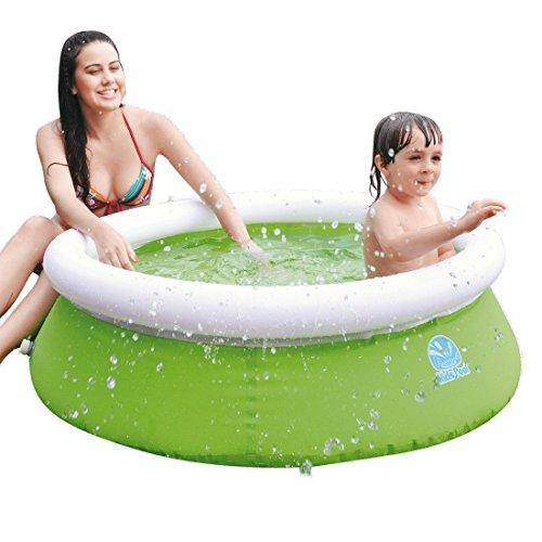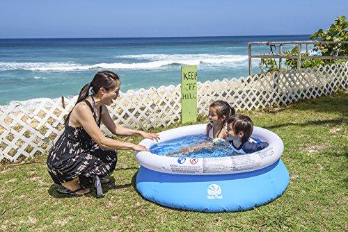 ジーロン製の円形のプールでふくらましたサイズは直径約122センチ、高さ約35センチで水は約230?入ります。チューブ部分に空気を入れて水を入れれば自立します。ふくらまし部分が少ないので時間の短縮と手間が省くことができますのでお手軽にご使用いただけます。