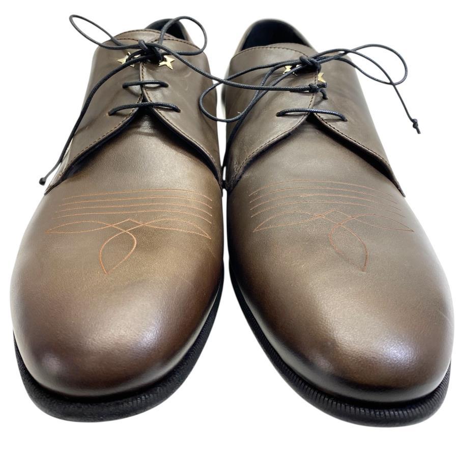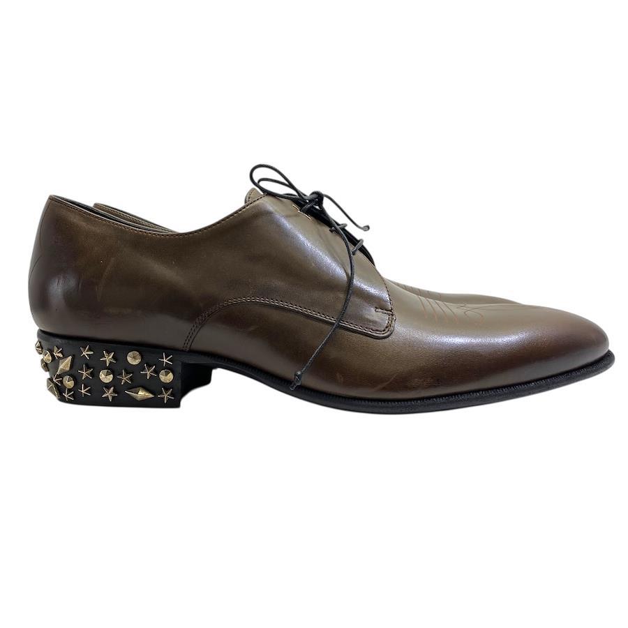 【コメント】外側:スレ/押し跡(写真参照) 内側:特筆すべきダメージなし上質なレザーにスタッズと繊細な装飾が映える、洗練されたシルエットでビジネスからカジュアルまで幅広く活躍する一足。